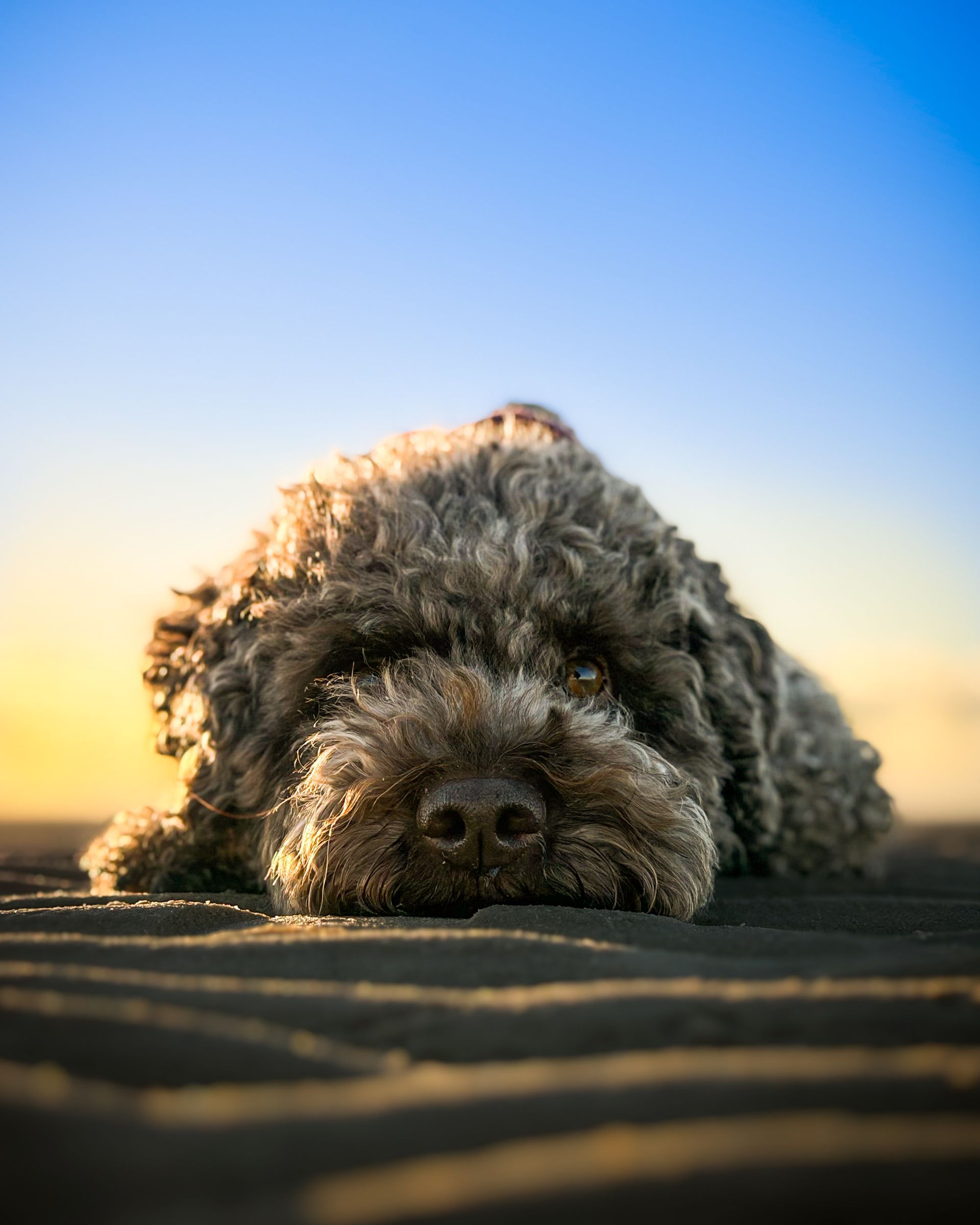 Und das Ergebnis? Inji war vollkommen entspannt. Kein Zittern, kein Hecheln – einfach ein Hund, der den Moment genießen durfte.