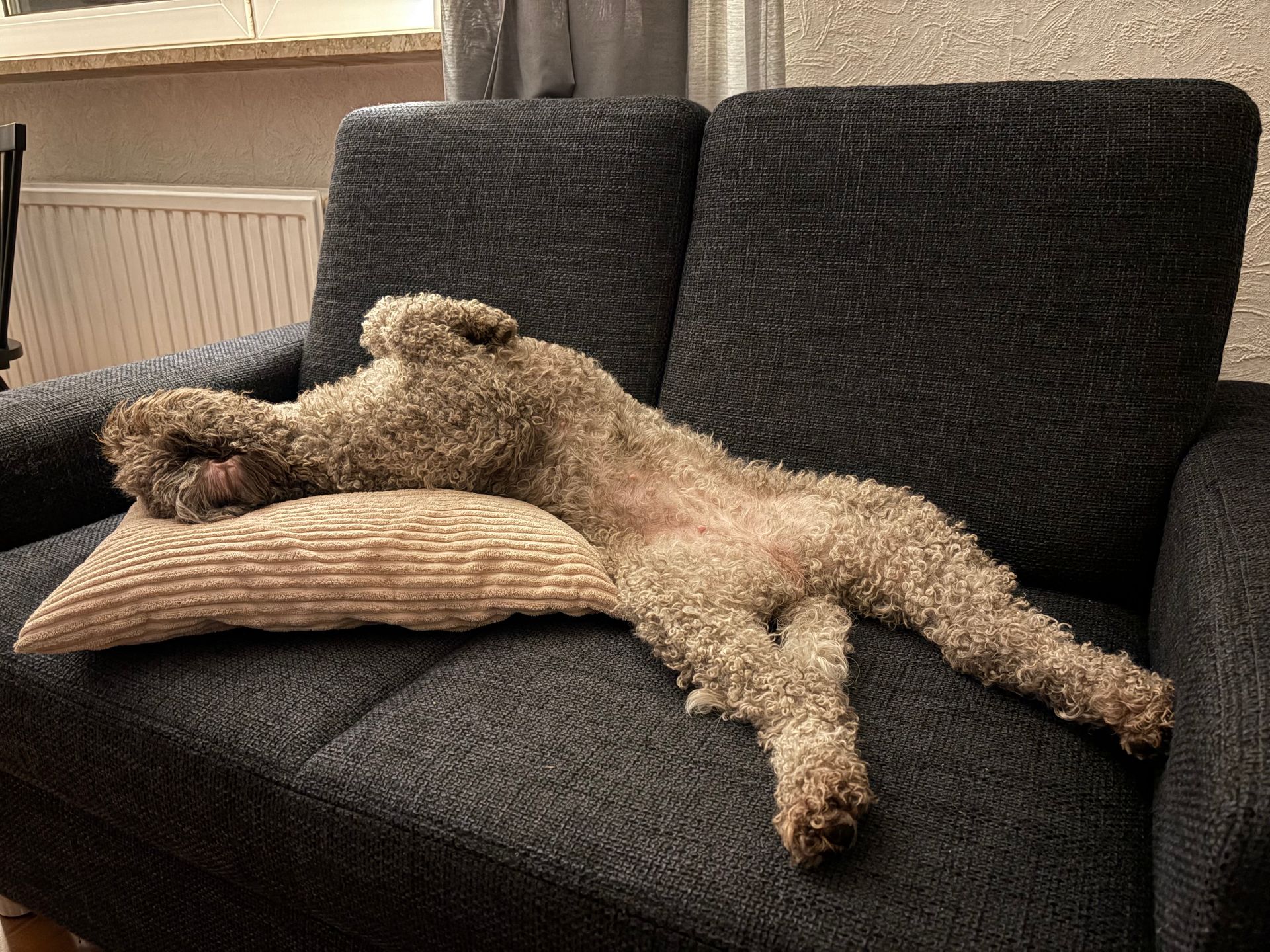 Natürlich haben wir in der Vergangenheit viel trainiert. Mit Unterstützung von verschiedenen Trainer:innen haben wir an Gegenkonditionierung gearbeitet, Entspannungssignale etabliert und Rituale geschaffen. Für einzelne, vereinzelte Geräusche im Alltag und Knaller wie Schüsse, hat das enorme Fortschritte gebracht.